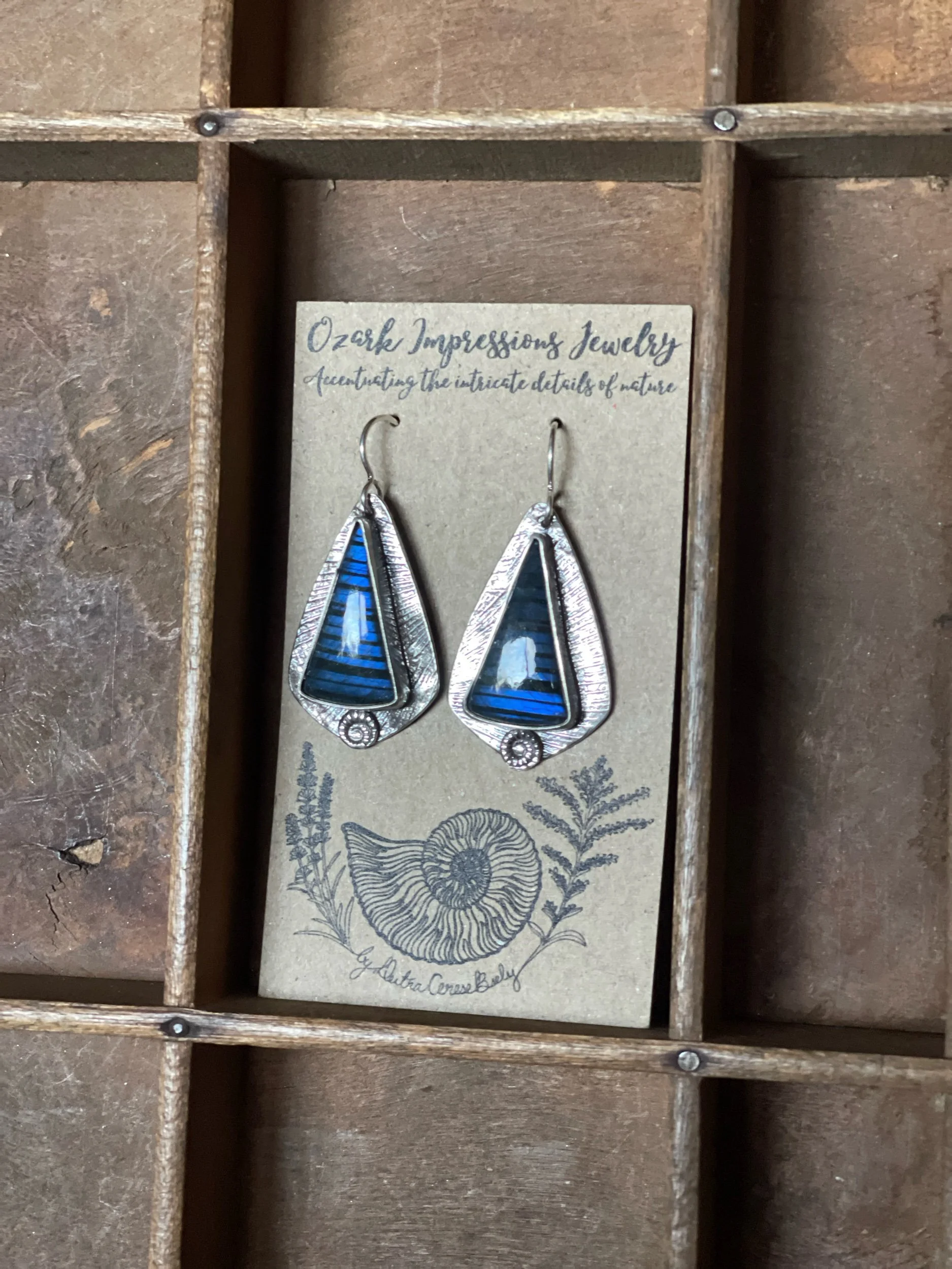 Each piece of Ozark Impressions Jewelry is impressed with nature findings from the Ozark Region where I grew up and continue to live. Every texture reminds me of a hike along an Ozark trail; a creek, river, or cave explored; or a sweet creature that shared these hills with me. I want the wearer to feel a bit of the magic and nostalgia I’ve felt exploring this place, and carry it with them wherever their journey takes them.